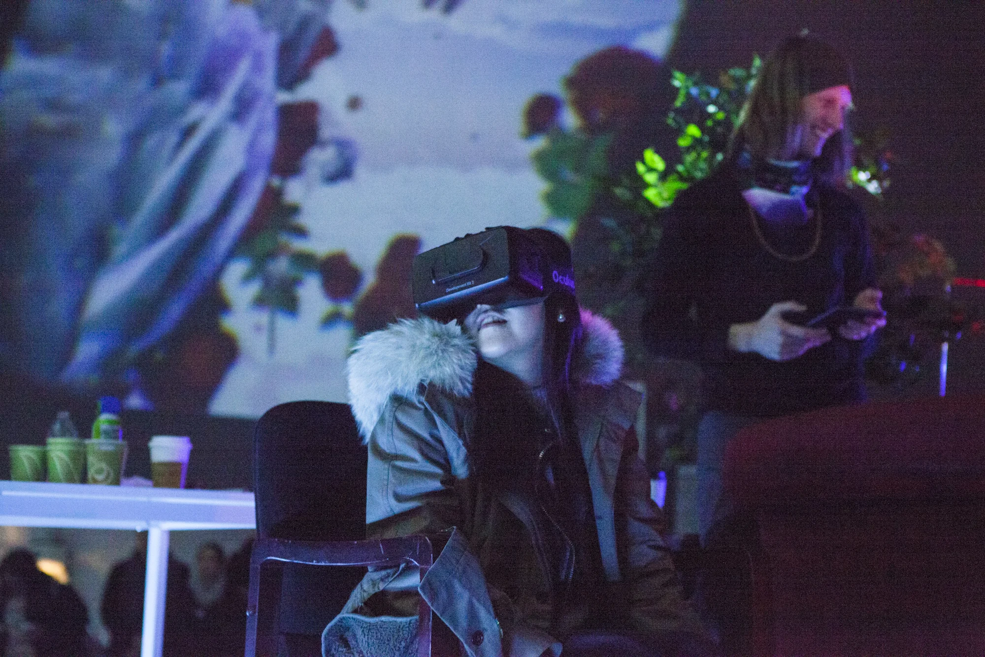 The participant's visual experience in VR is projected back out into the venue, becoming part of the show.