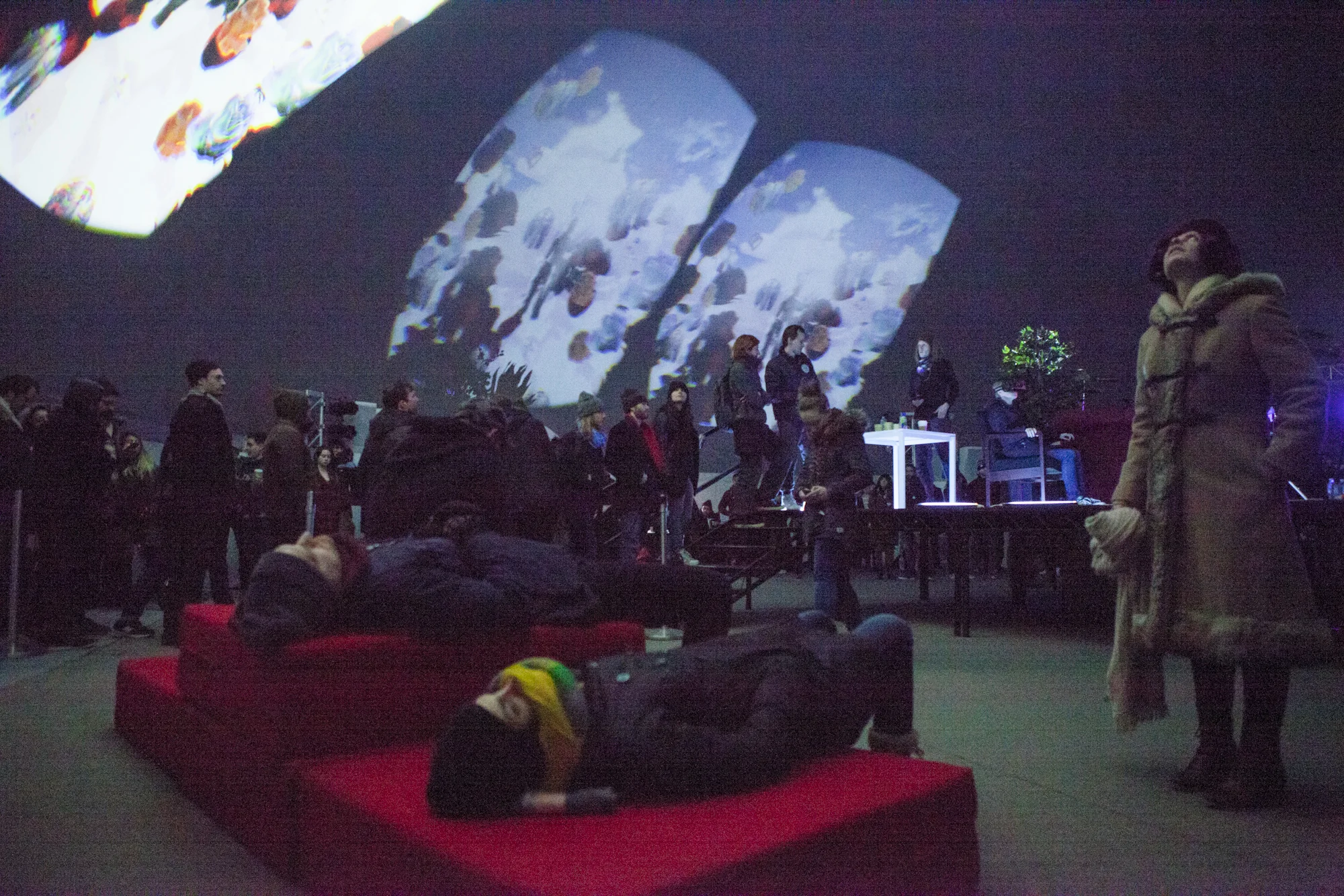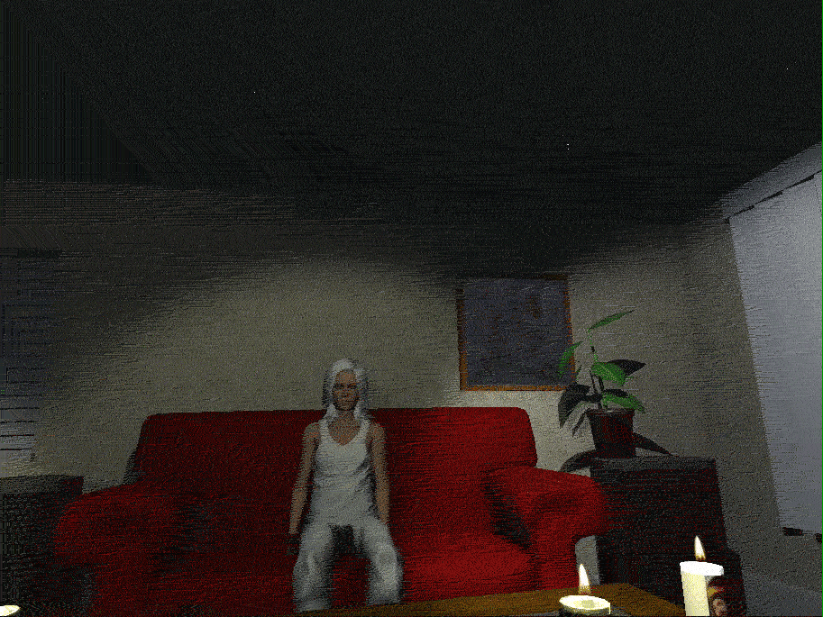 One at a time participants don the mask and enter virtual reality to find another layer of the outside narrative. “Inside” the 3D environment is rendered to match the stage set up. There is even an avatar of Anderson on the couch that tracks her motions.