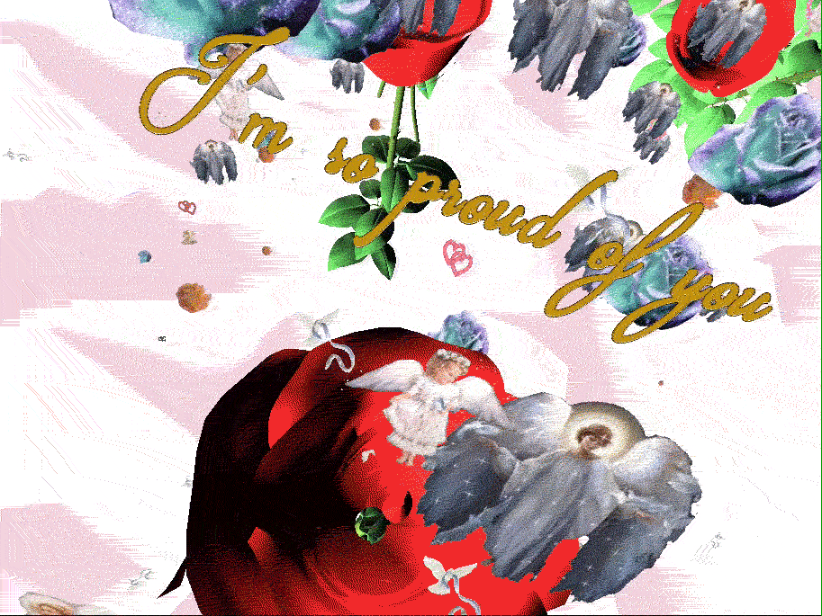comes through the pre-internet aesthetic of paper greeting cards, and the universal